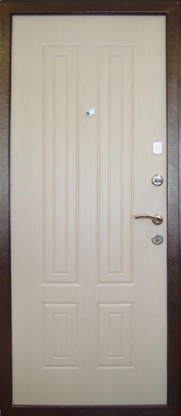 В полотно вмонтированы замки, усиливающие защиту входной двери от взлома.