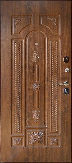 Металлическая дверь данной модели имеет отделку декоративными панелями из МДФ ПВХ, отличается высокими эксплуатационными качествами. Габариты будут зависеть от индивидуальных размеров проема (вызов замерщика – бесплатно).
